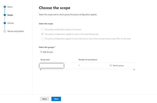 On the Choose the scope tab, select the appropriate user groups. Click Next.