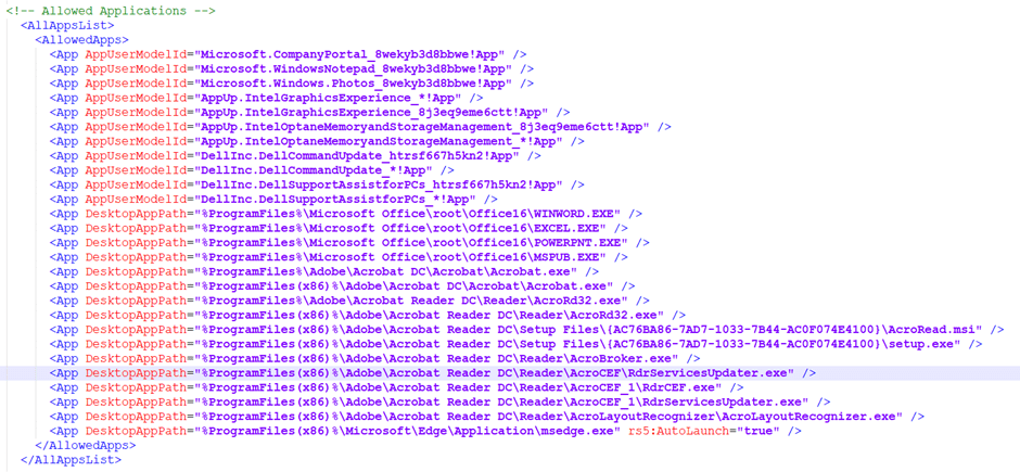 Permitted applications need to be set up in the AllAppList section. These allowed apps will function as an App Control, meaning all other applications will be denied access. This measure will help enhance security.