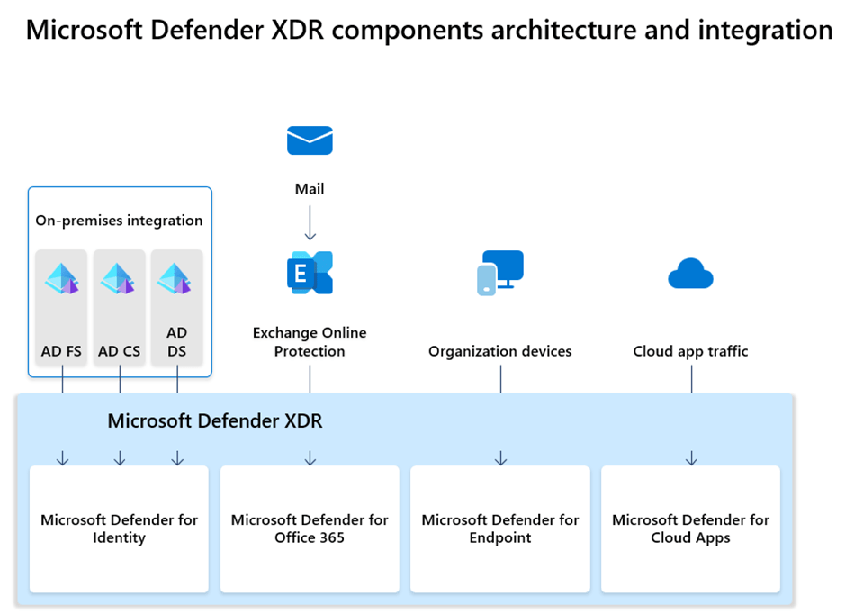 The image below highlights the key components of Microsoft Defender XDR.